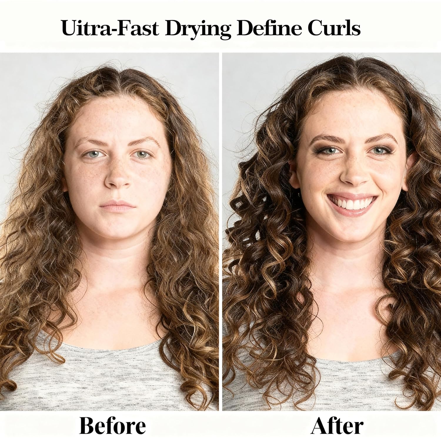 ✨【Curly Hair’s Best Friend】Wider, spaced prongs** prevent tangling and boost volume at the roots. Works for all curl types (3A–4C), coils, or waves. For best results: Scrunch hair upward while drying to lock in bounce.