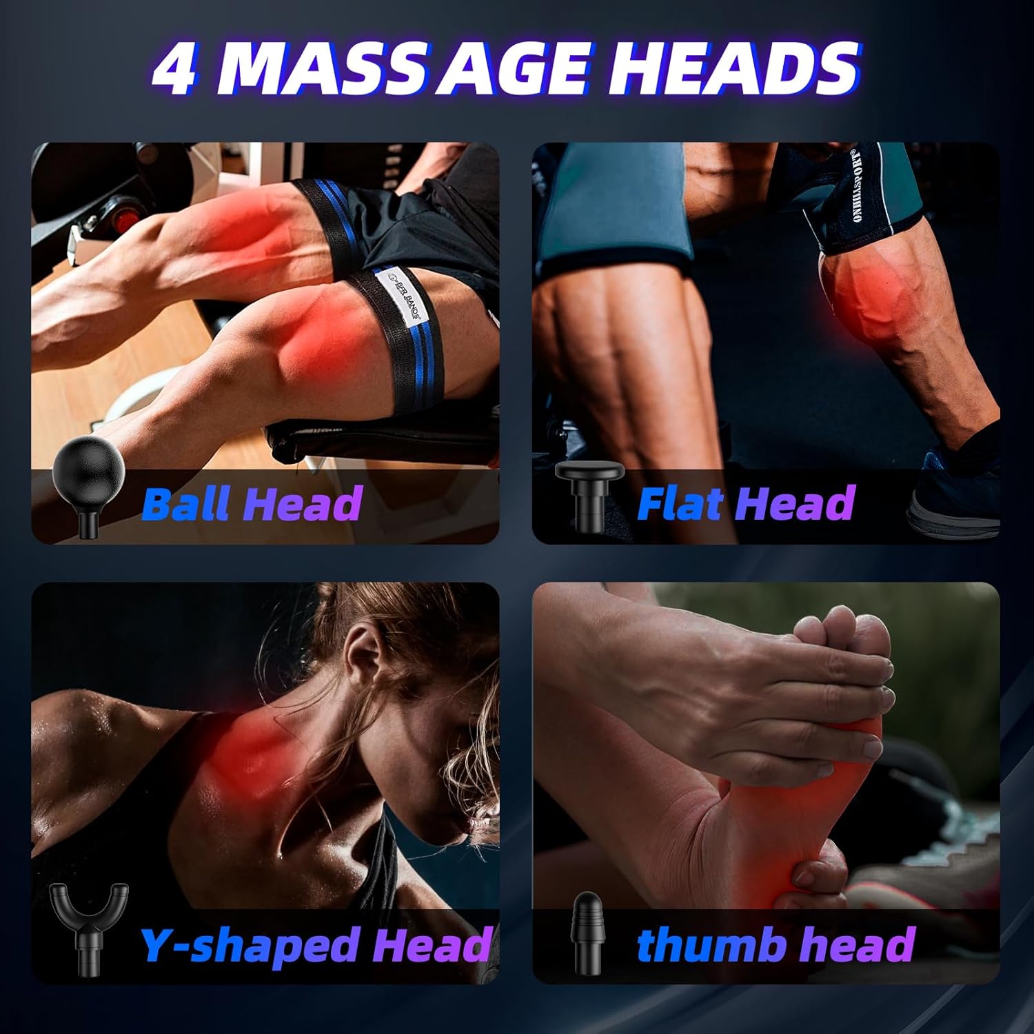 4 Professional Massage Accessories:Ball Head, Flat Head, Y-shaped Head, Thumb Head