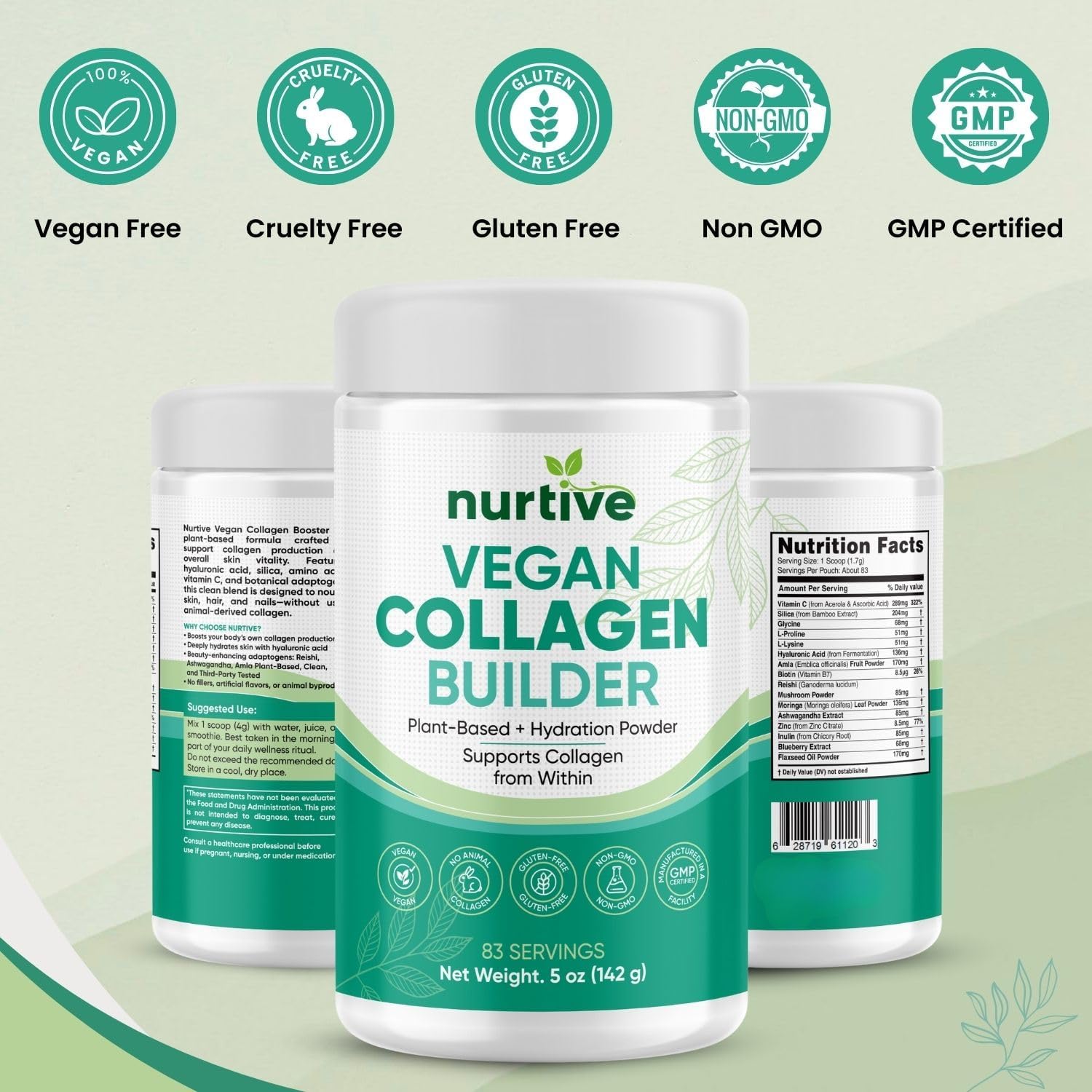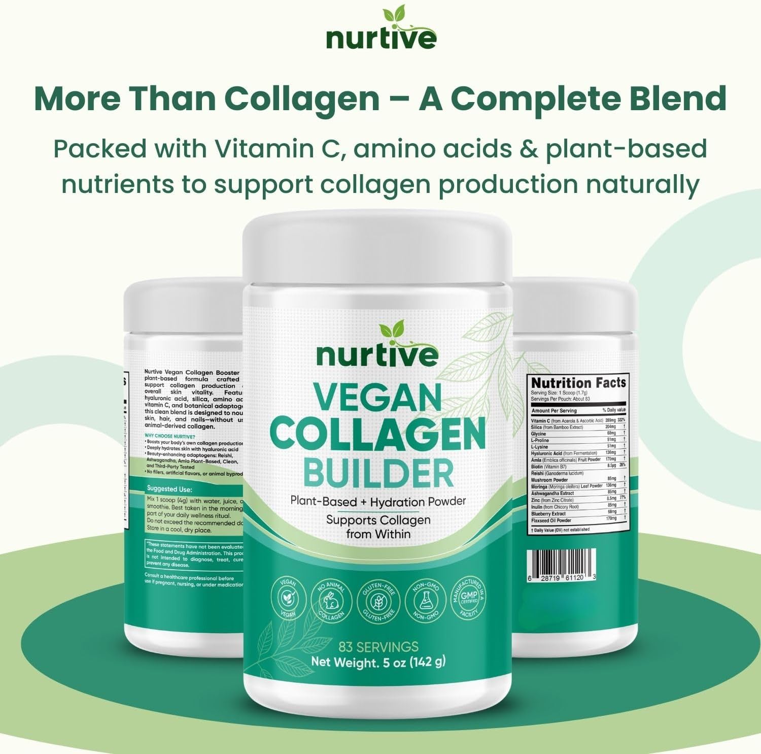🌿 Plant-Based Collagen Support – NURTIVE Collagen Builder Powder is designed to help your body support collagen production without animal ingredients, for a clean vegan alternative