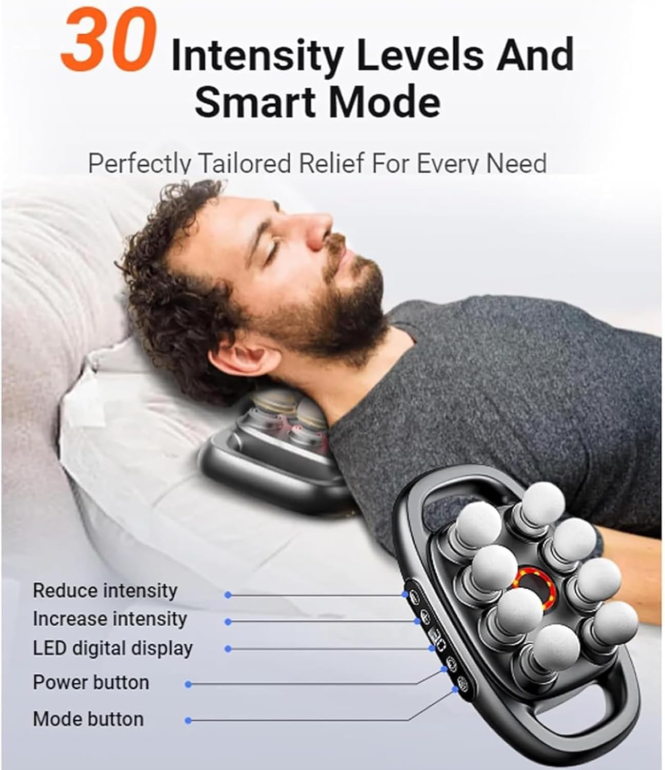【Ultimate Relaxation with 16 Deep-Kneading Nodes & 30 Intensity Levels】Verniqo Massager Experience the pinnacle of relaxation with 16 deep-kneading Evasea nodes and 30 adjustable intensity levels. This powerful Needsary Massager delivers up to 48kg of deep pressure, providing perfectly tailored for every need
