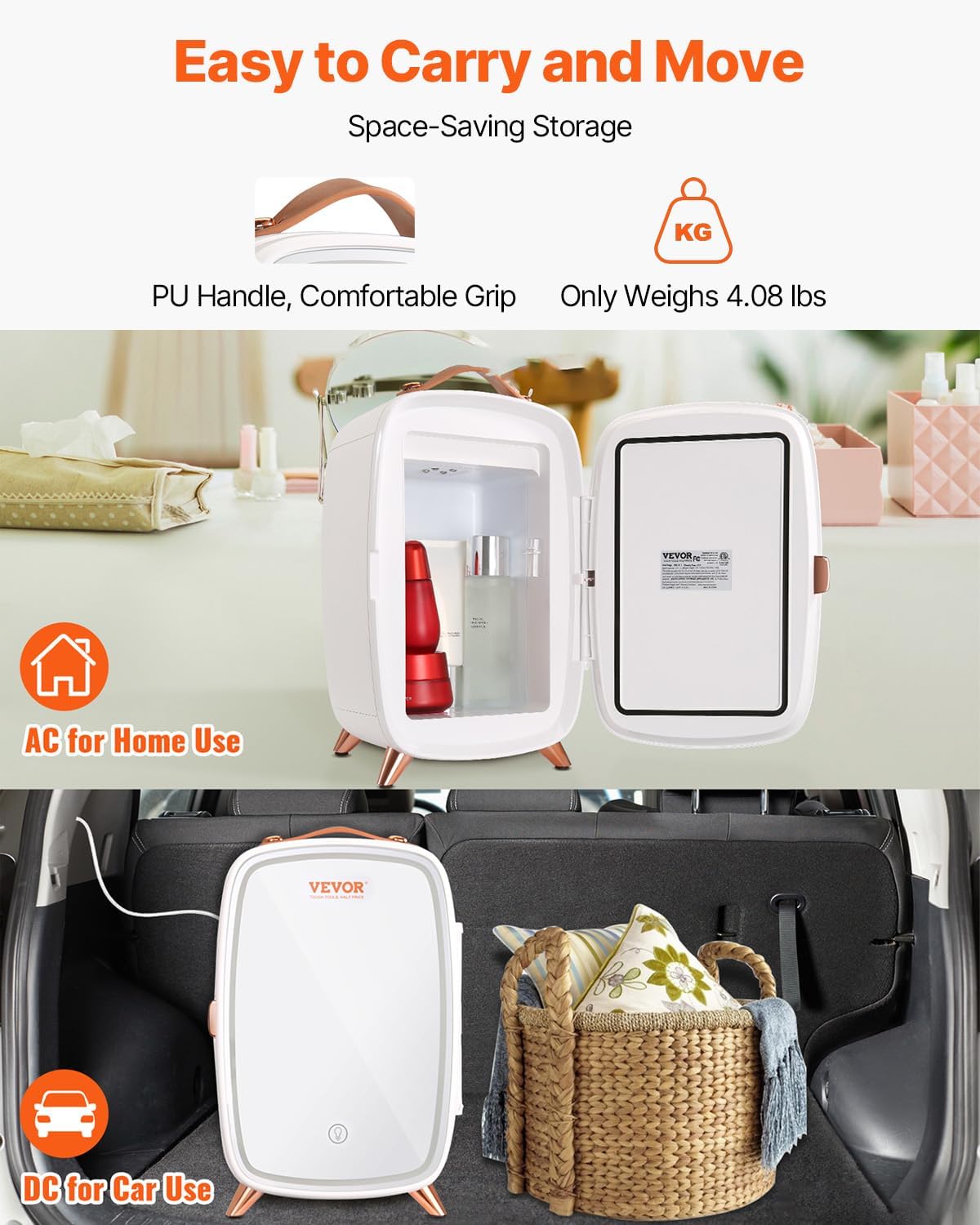 Lightweight & Portable: Designed with a 6-liter capacity and weighing just 4.08 lbs, this compact personal fridge is easy to carry with its soft PU handle—ideal for home, travel, or office use.