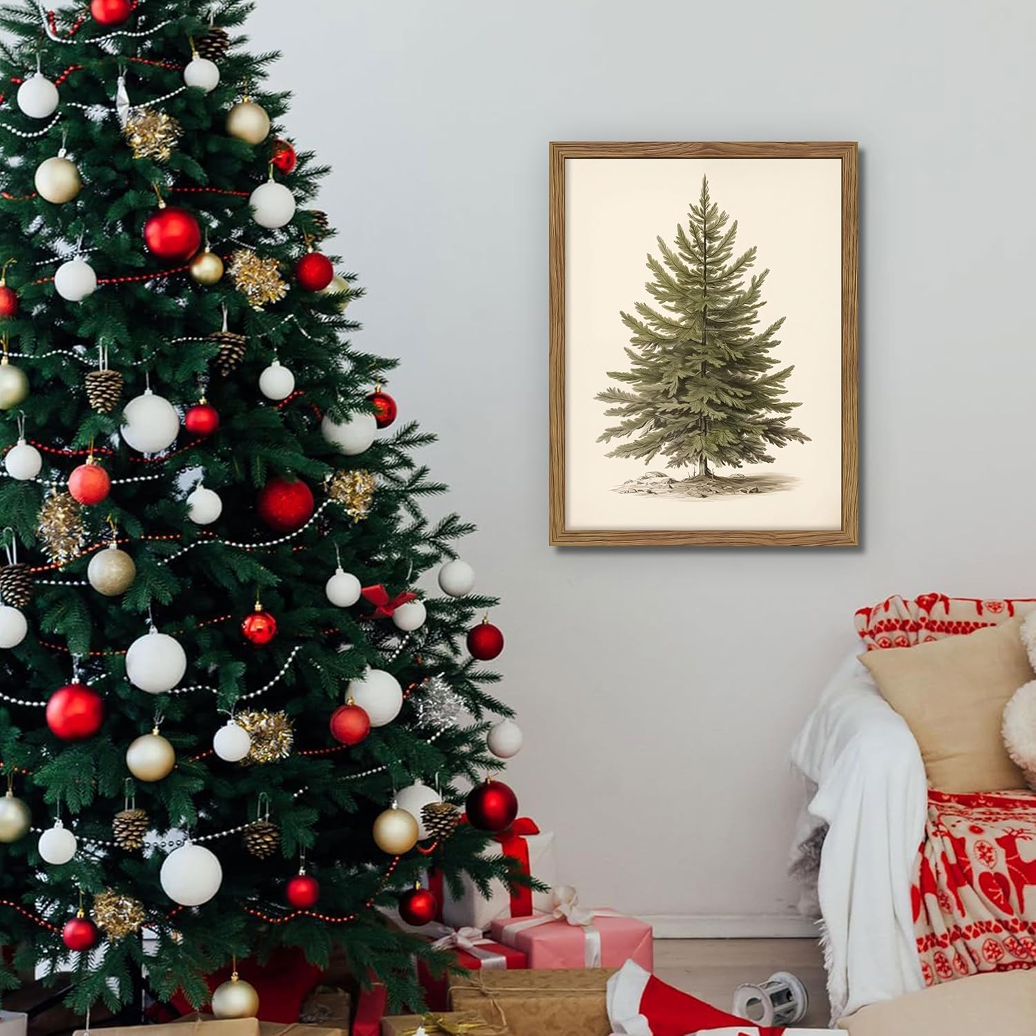 【High-Quality Framed Christmas Wall Art】Crafted with care, this framed Christmas wall art features vivid canvas printing and a sturdy wood frame that enhances the overall vintage aesthetic. Whether used as Christmas wall art in your living room, bedroom, or hallway, or as elegant Christmas wall decorations near the fireplace or tree, it brings refined charm and durability to your holiday décor collection.