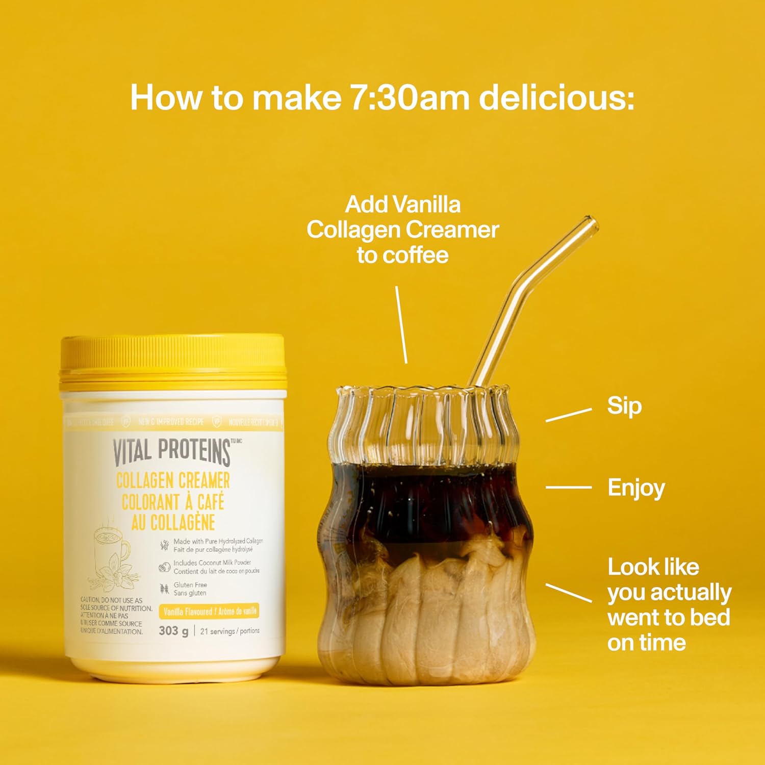 Easy To Take: Simply add 2 tablespoons VITAL PROTEINS vanilla flavoured collagen creamer into the beverage of your choice, hot or cold, and mix until dissolved