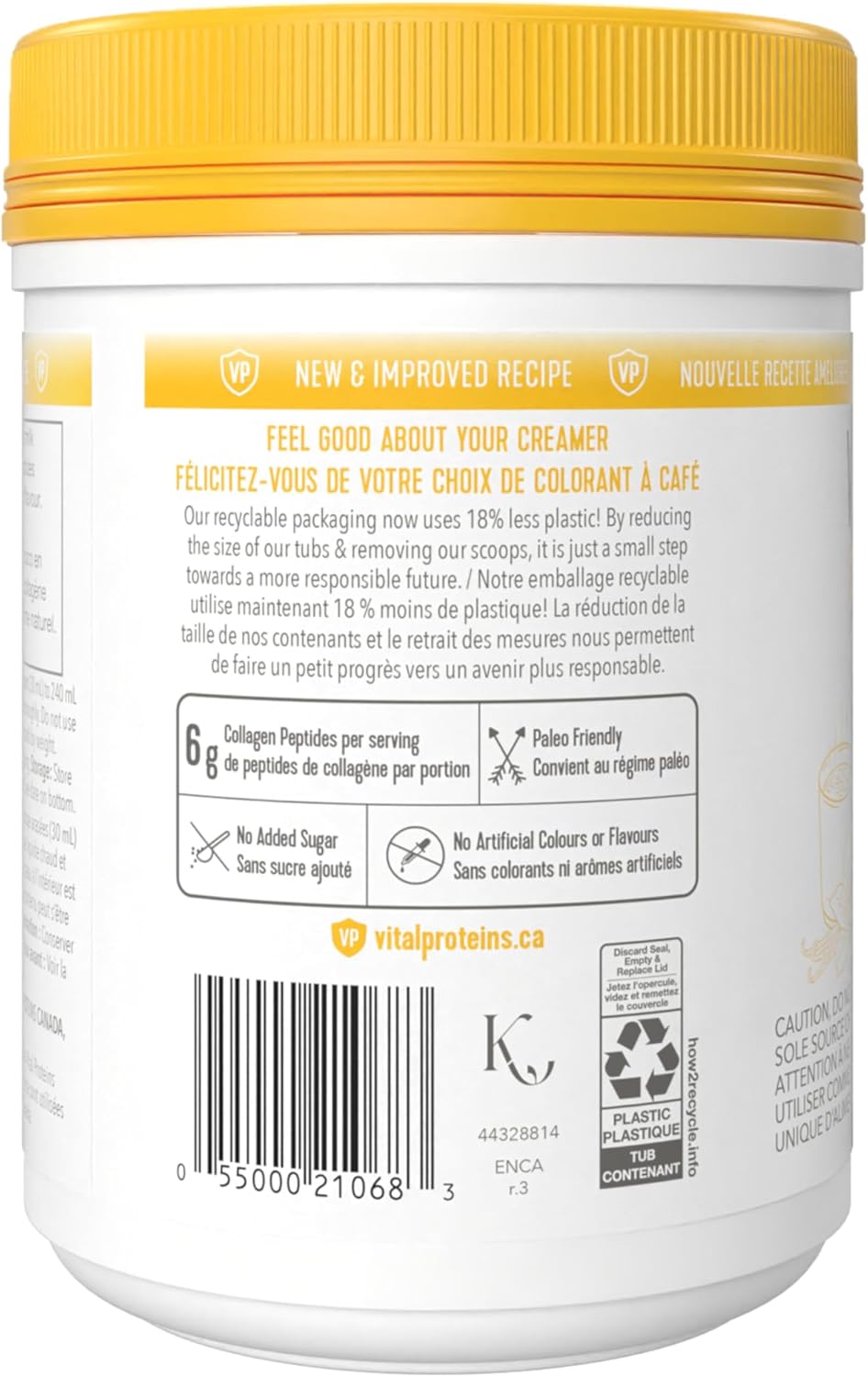 6g Of Collagen Per Serving: Each serving of VITAL PROTEINS vanilla creamer contains 6g of bovine collagen peptides per serving