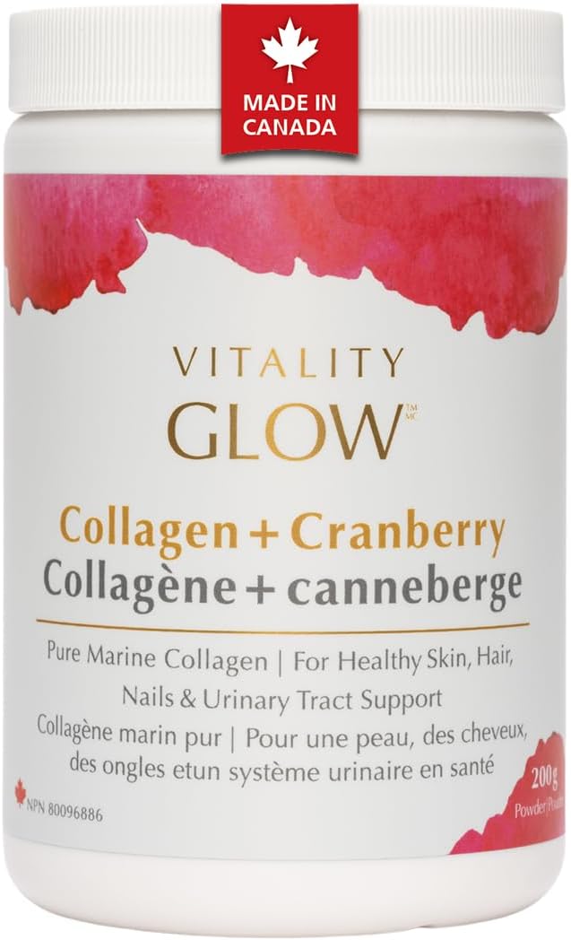 VITALITY GLOW Collagen + Cranberry uniquely combines the benefits of marine collagen with the incredible antioxidant superpower of cranberry. FEEL AND LOOK your best every day with a full dose of cranberry in your collagen. The properties of Cranberry may help prevent Urinary Tract Infections while marine sourced collagen protects and regenerates the collagen in your skin and body. All in a delicious cranberry flavoured beverage without the worry of sugar.