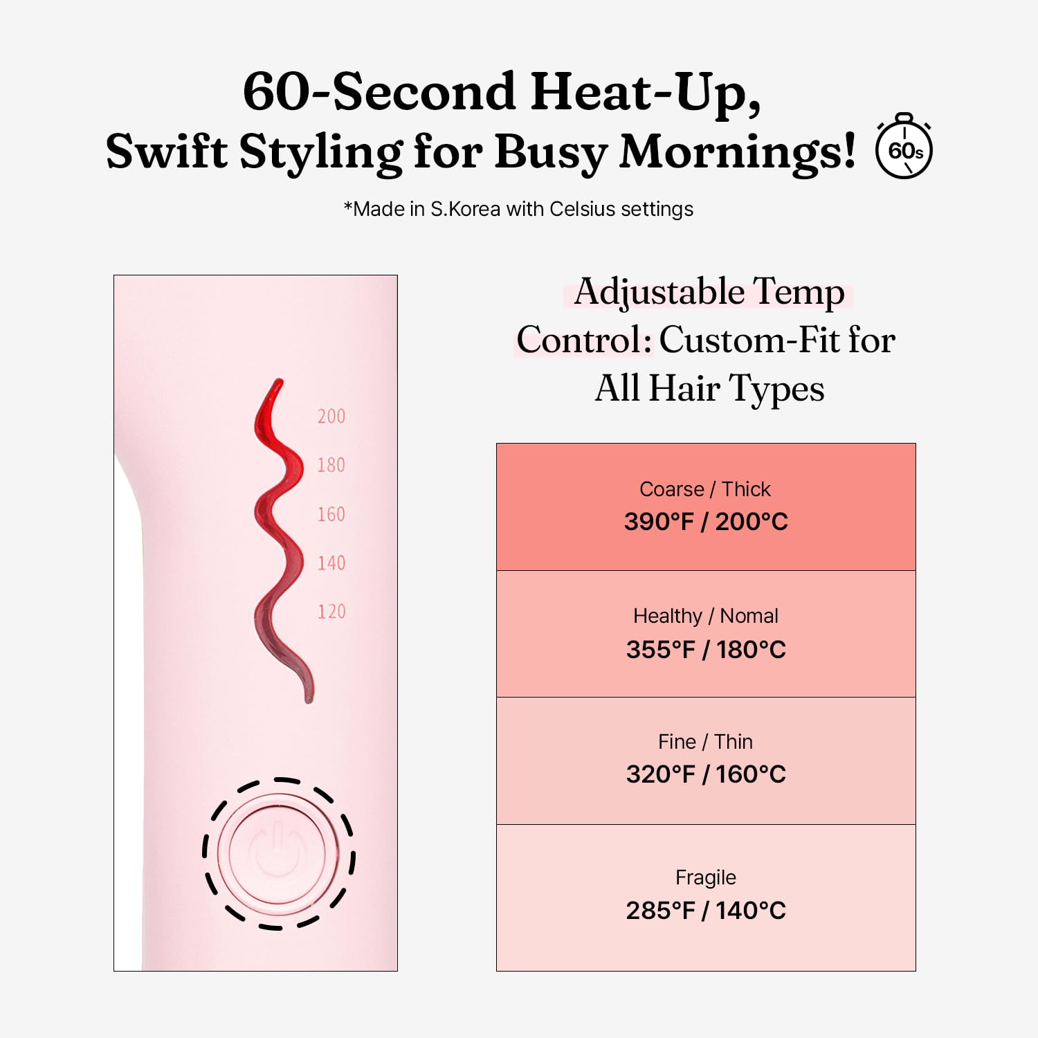 🤍 Heat Up in a Snap: Why wait? Our waver gets hot and ready in just 60 seconds, with temps from 248°F (120°C) to 392°F(200°C). Find your hair’s sweet spot and get waving!