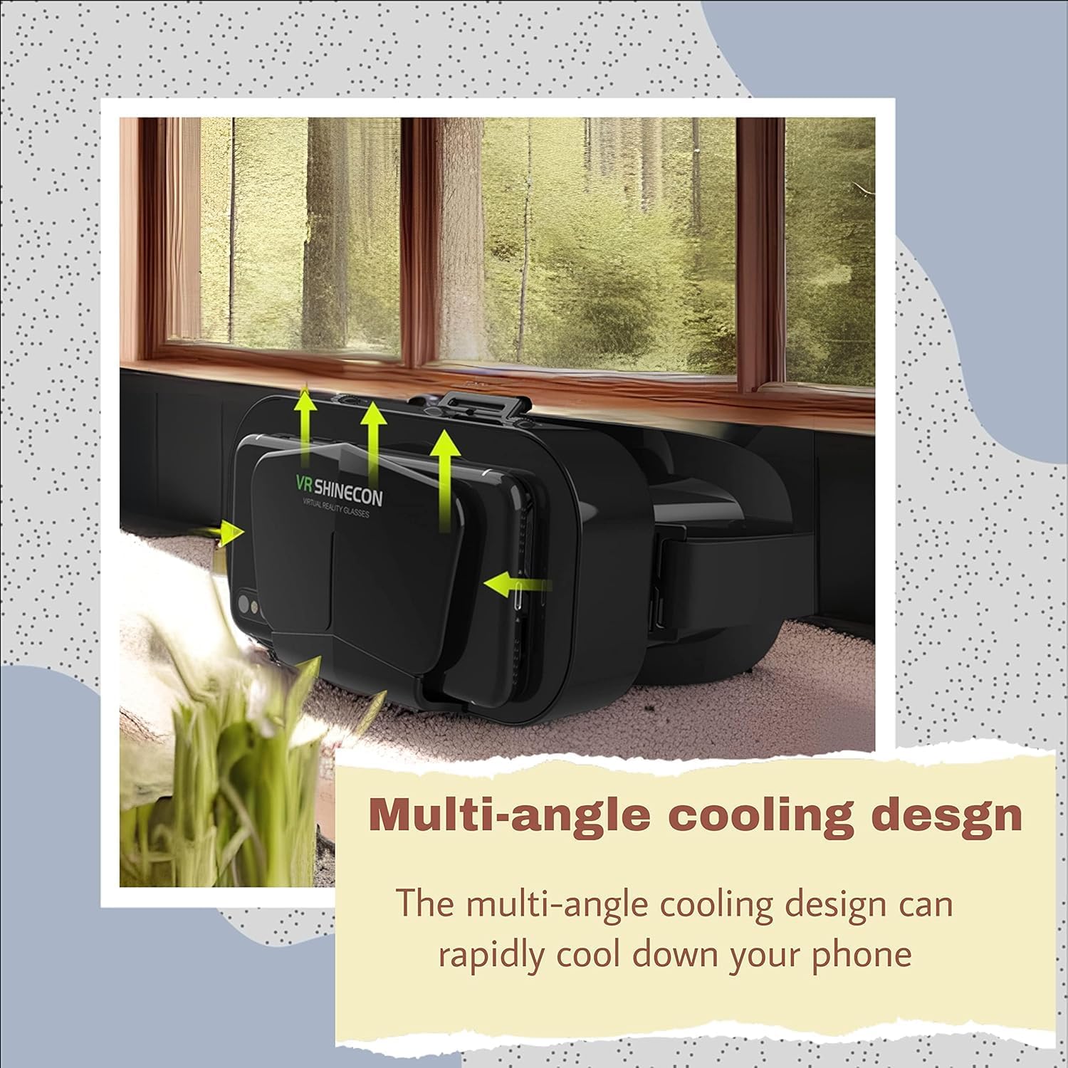 4️⃣【Open Ventilation Design for Better Heat Dissipation】 🌬️ Say goodbye to overheating! Unlike enclosed VR boxes, our ventilated design keeps your phone cool, making it more suitable for extended viewing sessions without performance drops or discomfort.