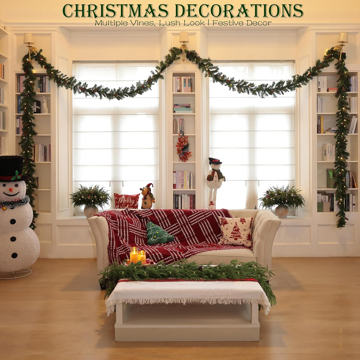 Premium Norfolk Pine Stems for Christmas Decorations – This set includes 12 pieces of 23-inch Artificial Norfolk pine stems, 3 red berries, 4 lifelike pinecones, and a 40 inches warm white LED string light, creating a festive and natural look for your Christmas tree, mantel, or tabletop.