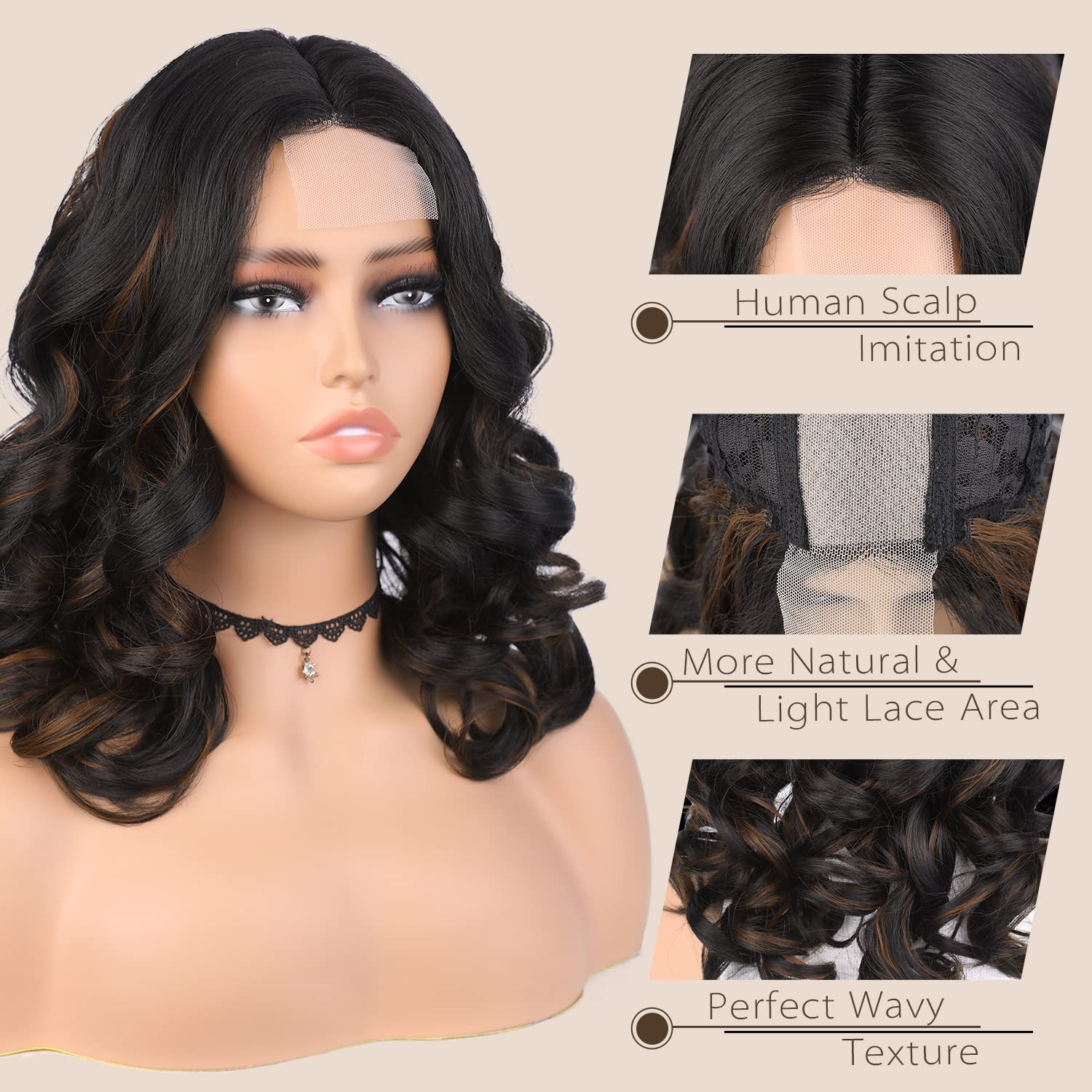 💖💖[Product Selling Points] 1.Natural Hairline. 2.Bouncy and lasting curls. 3. Medium-length-modifies the face shape.4.The hilighted wig can be side part, middle part, can be restyled according to your like, looks realistic like your own hair.