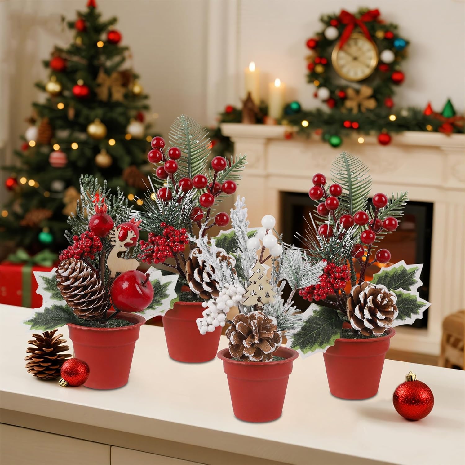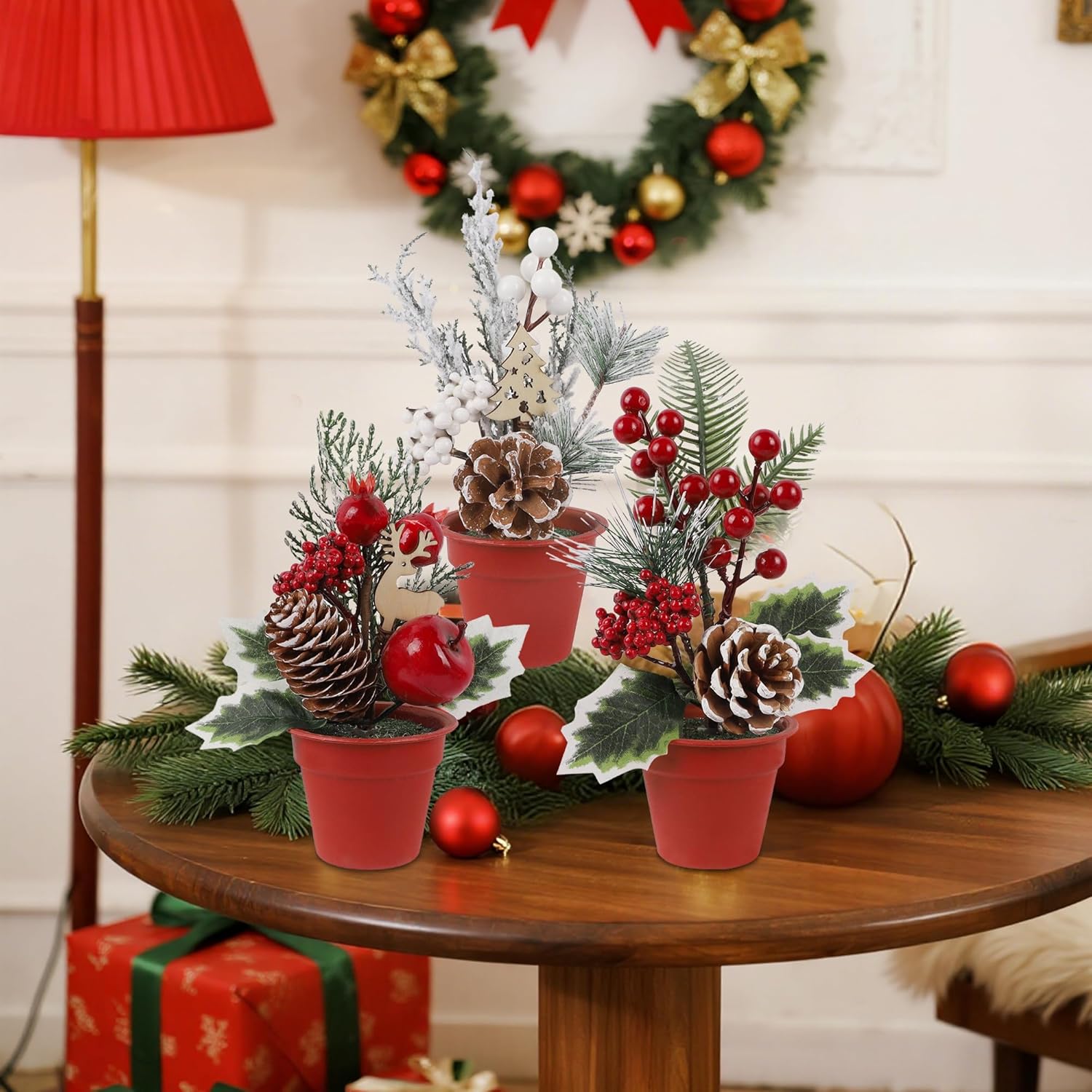 Christmas Decorations: This charming mini Christmas tree is tastefully adorned with real pine cones and vibrant red berries, creating a stunningly lifelike festive look.