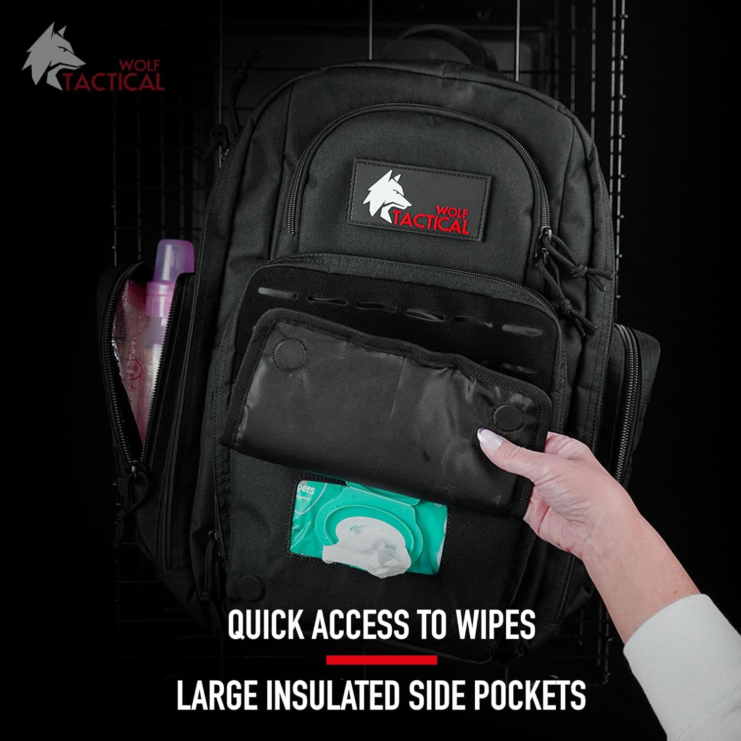 【BUILT TO LAST】★ Crafted from rugged yet lightweight 600D polyester material, our diaper backpack is tailor-made for tactical dads on the move. Its water-resistant properties keep your baby essentials dry in unpredictable weather conditions. The laser-cut Molle webbing not only adds a sleek tactical look but also allows for the attachment of Molle pouches and gear, seamlessly merging functionality with a modern, urban aesthetic.