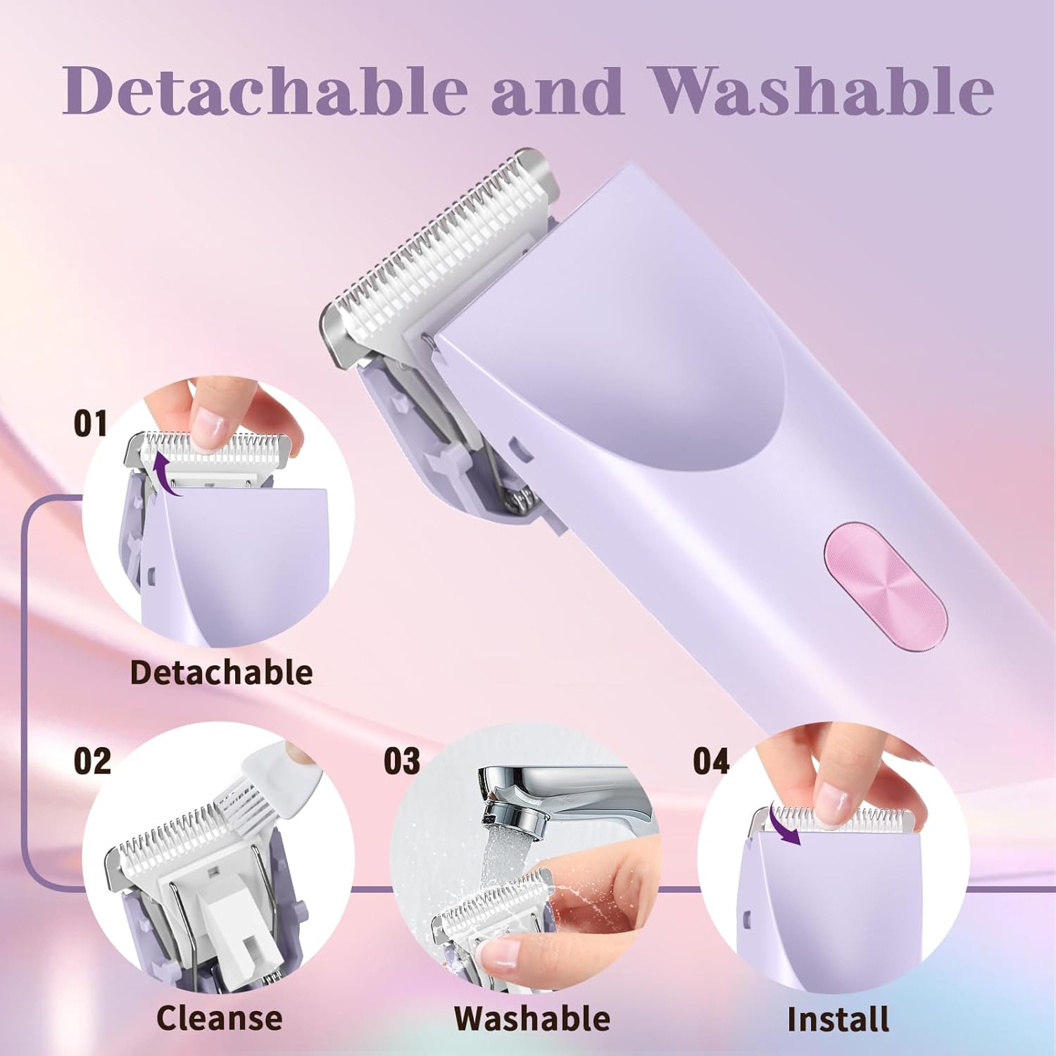 Dual-Head Design: Our pubic hair trimmer for women boasts a 2-in-1 design, featuring both a body shaver head and a facial shaver head in one sleek unit. No need for blade replacements – enjoy hassle-free grooming anytime, anywhere