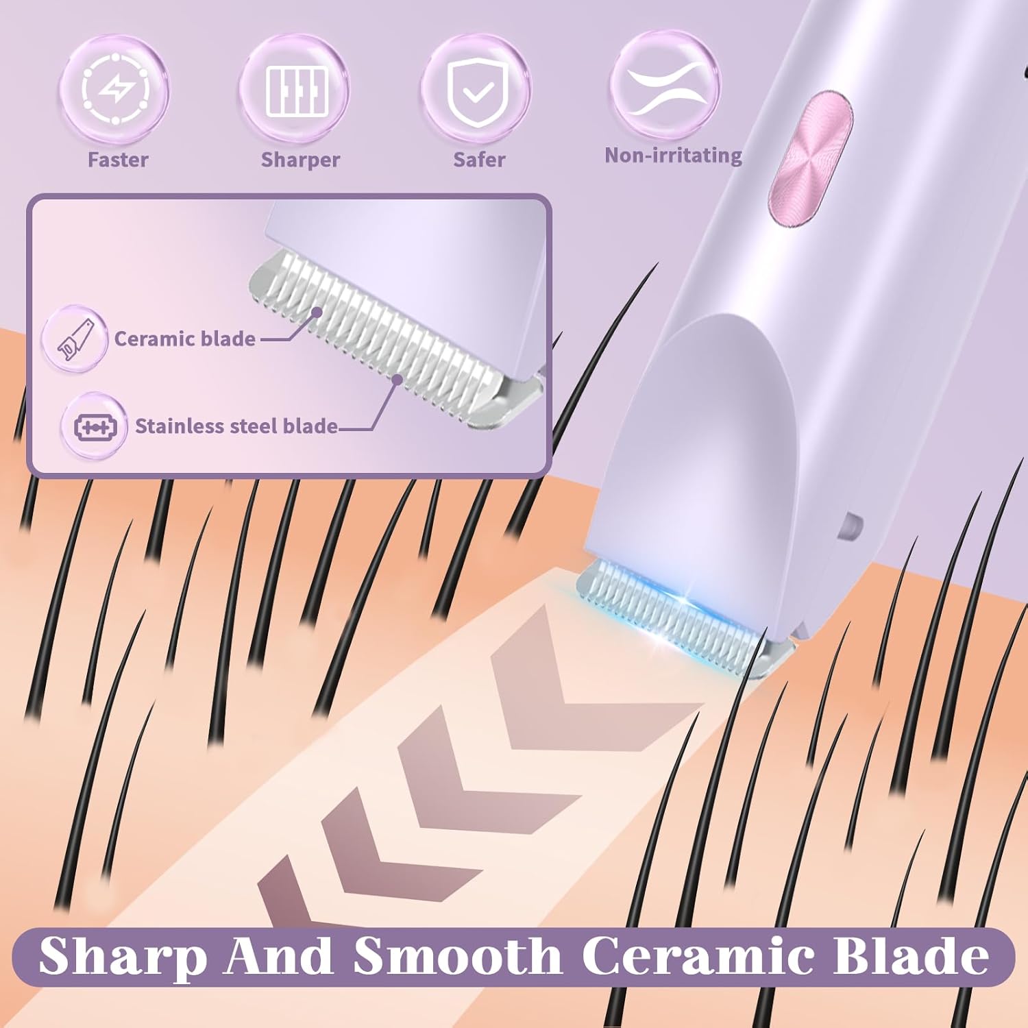 Safe & Smooth Shaving: Crafted with stainless steel round-edge blades and anti-rust ceramic blades, our shaver for women’s private areas ensures a safer, sharper, and smoother shaving experience. Say goodbye to irritation – it’s perfect for even the most sensitive skin types. Moreover, the noise level of the lady shaver is very low, ensuring that even if used at night, it won’t disturb your family’s sleep