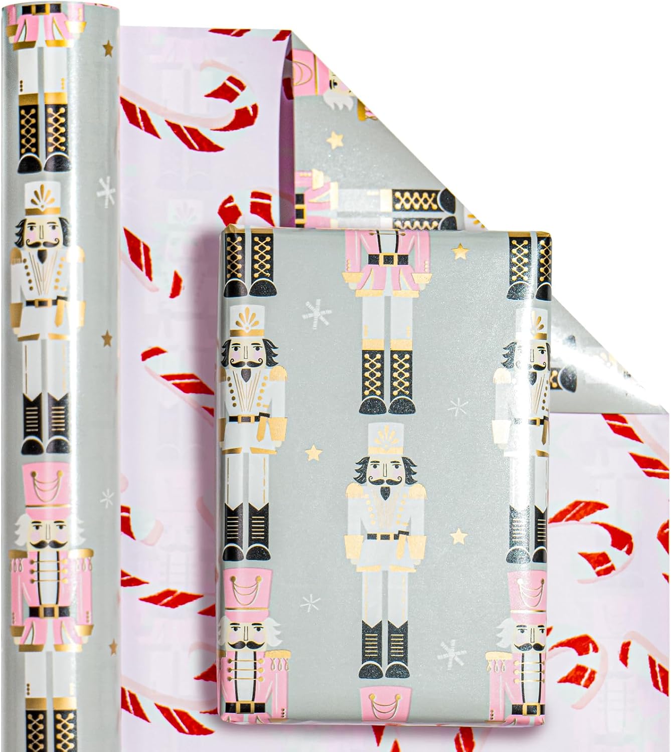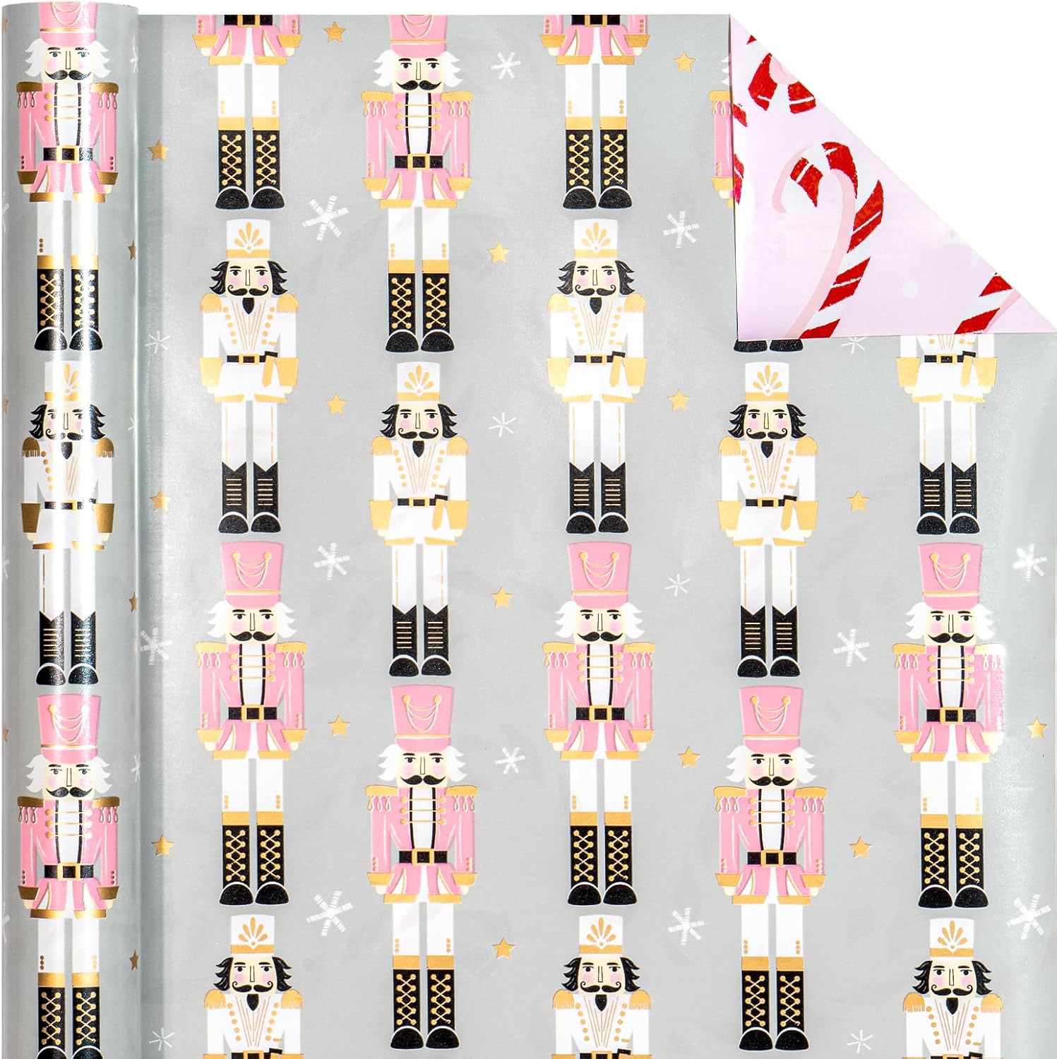 Reversible Design: Pink and white Nutcracker printed on one side, candy cane printed on the reverse. Two different designs make unique and varied gift presentations easy.
