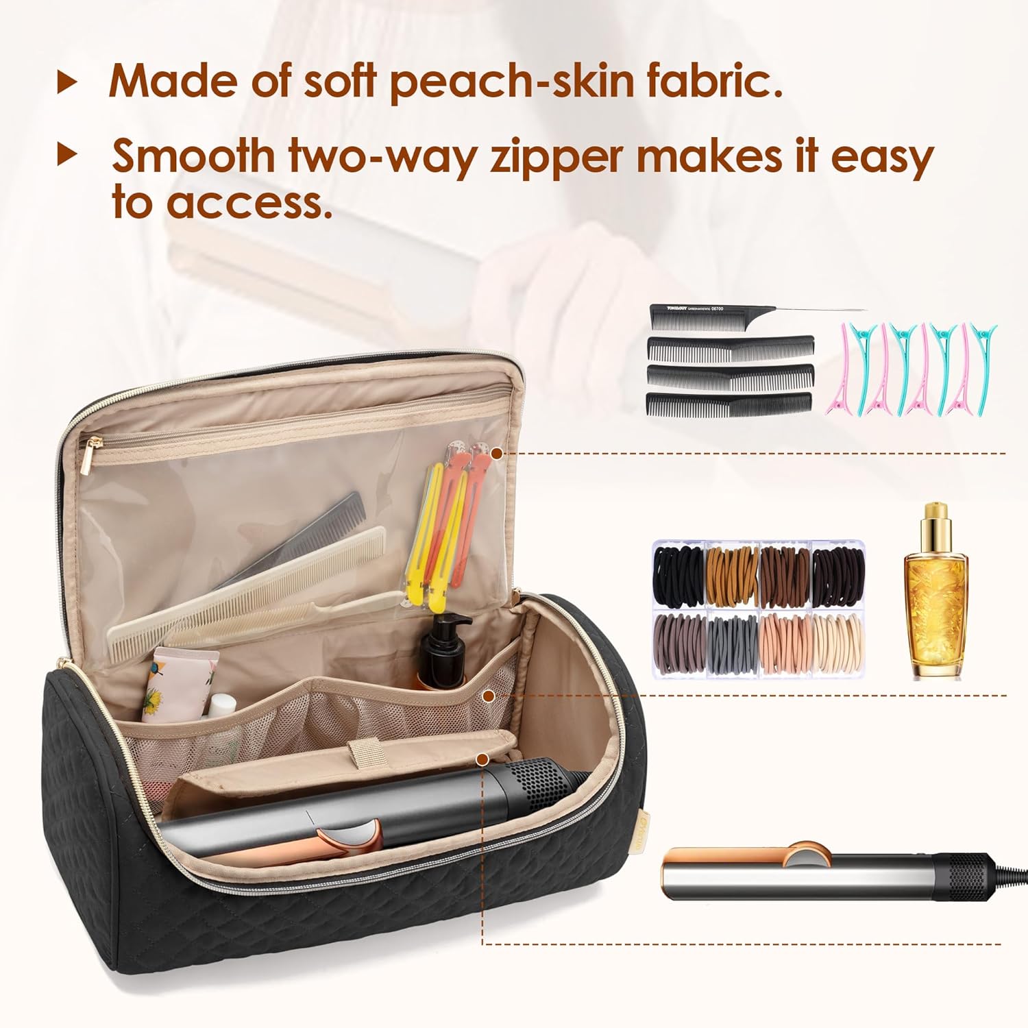 ACCESS EASILY: Dual-way smooth zipper and large opening design allows you to quickly get flat iron tools. 1 large back pocket for heat mat or charging dock