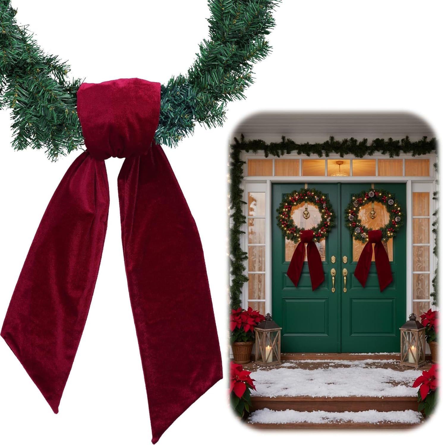 Premium Velvet Material: Transform your holiday decorations with luxurious velvet texture that creates stunning visual appeal and maintains rich color throughout the season. Our high-quality fabric resists fading and weather damage, ensuring your Christmas wreaths and door displays look professionally decorated from first installation through New Year