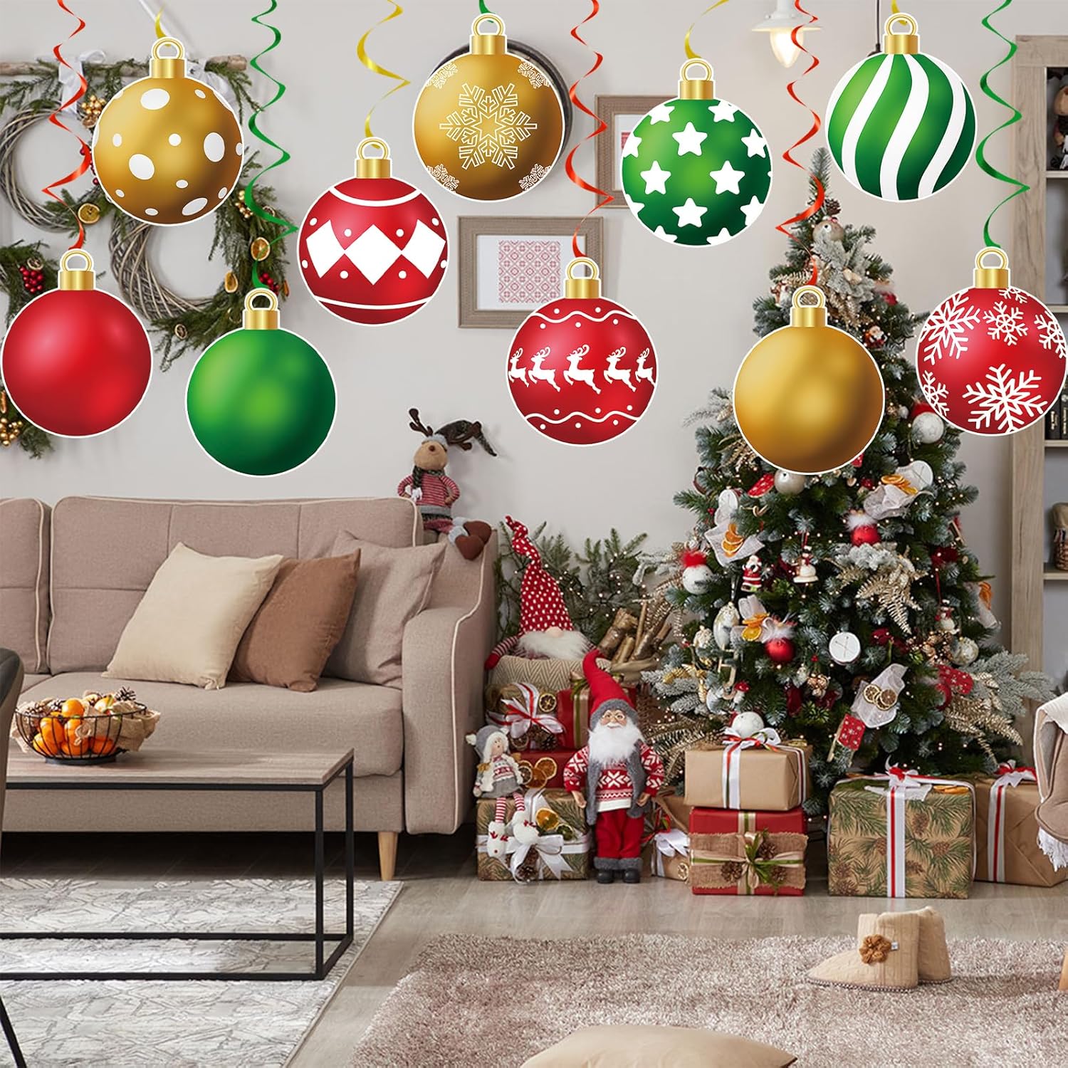 FESTIVE AND FUN CHRISTMAS SWIRLS: Enhance your Christmas party with YQUQWN’s set of 48 red, green, and gold hanging decorations. Featuring Each pack includes 20 single swirls, 20 Christmas ball hanging cutouts, and 8 double swirls, these eye-catching pieces bring a touch of elegance and fun to any holiday celebration. Perfect for transforming your space into a winter wonderland, these Christmas ceiling hanging decorations are a must-have for your festive decor.