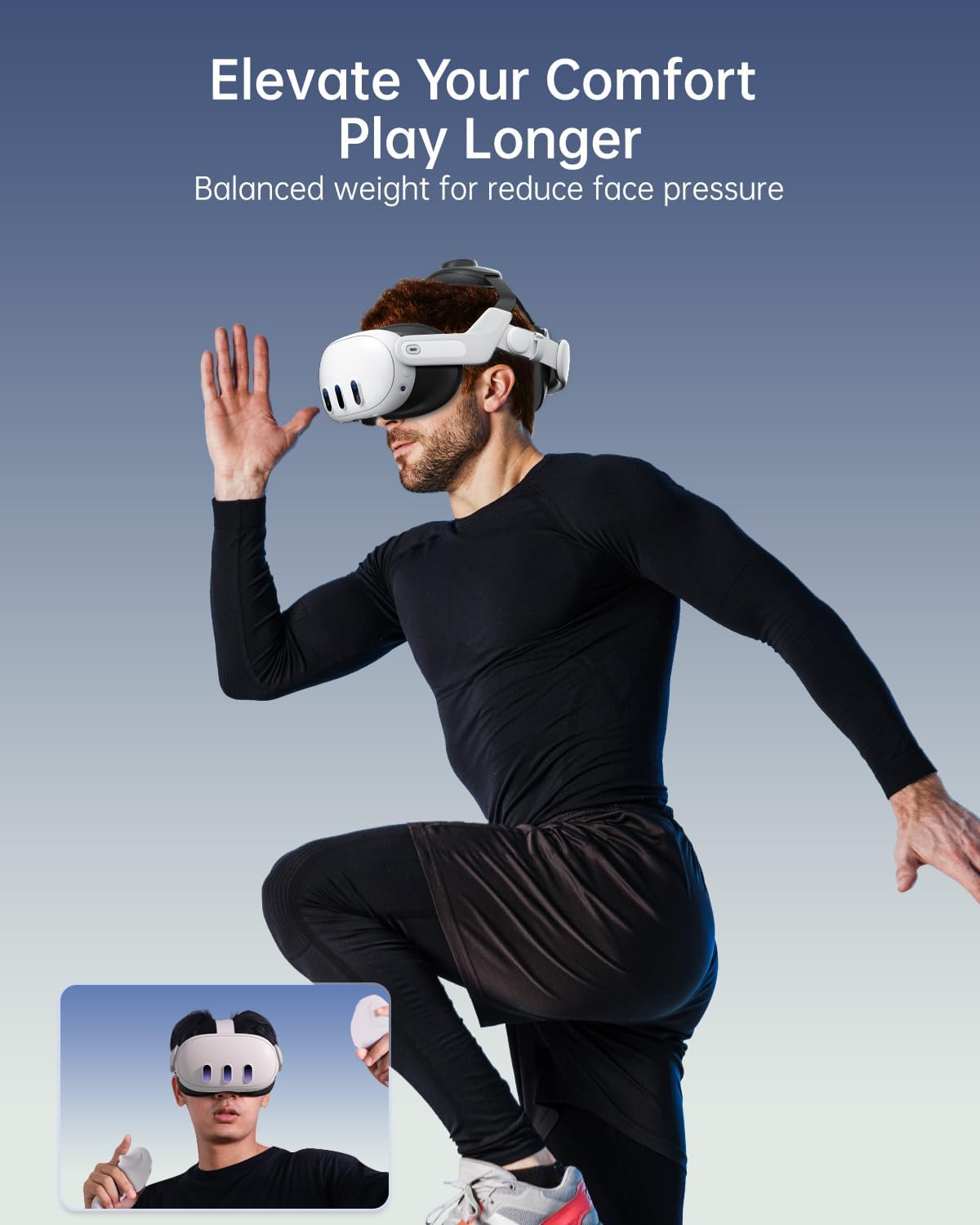 Double-knob Adjustable Headstrap Reduces Facial Pressure: The Quest 3S/Quest 3 head strap multi-adjustment design with 2 knobs on the top and back, which can be easily adjusted to the most comfortable state for you, suitable for 20.9~25.6 inches head circumference, both adults and children can play freely, effectively reducing facial pressure and bringing an immersive gaming experience.
