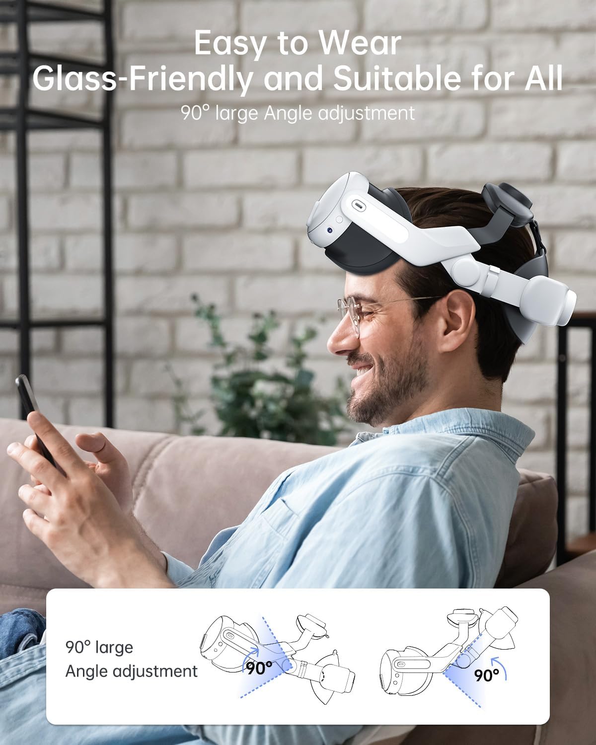 90° Large-Angle Adjustment: The Quest 3S/3 headstrap adopts ergonomic design principles, and you can return to the real world by simply flipping the headset over without taking off the headset. The adjustable hinge allows you to flip the headset around and put it on and off with ease.