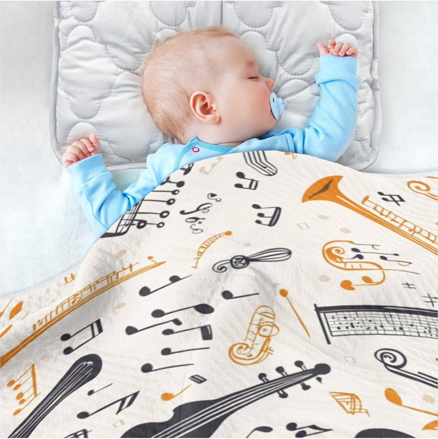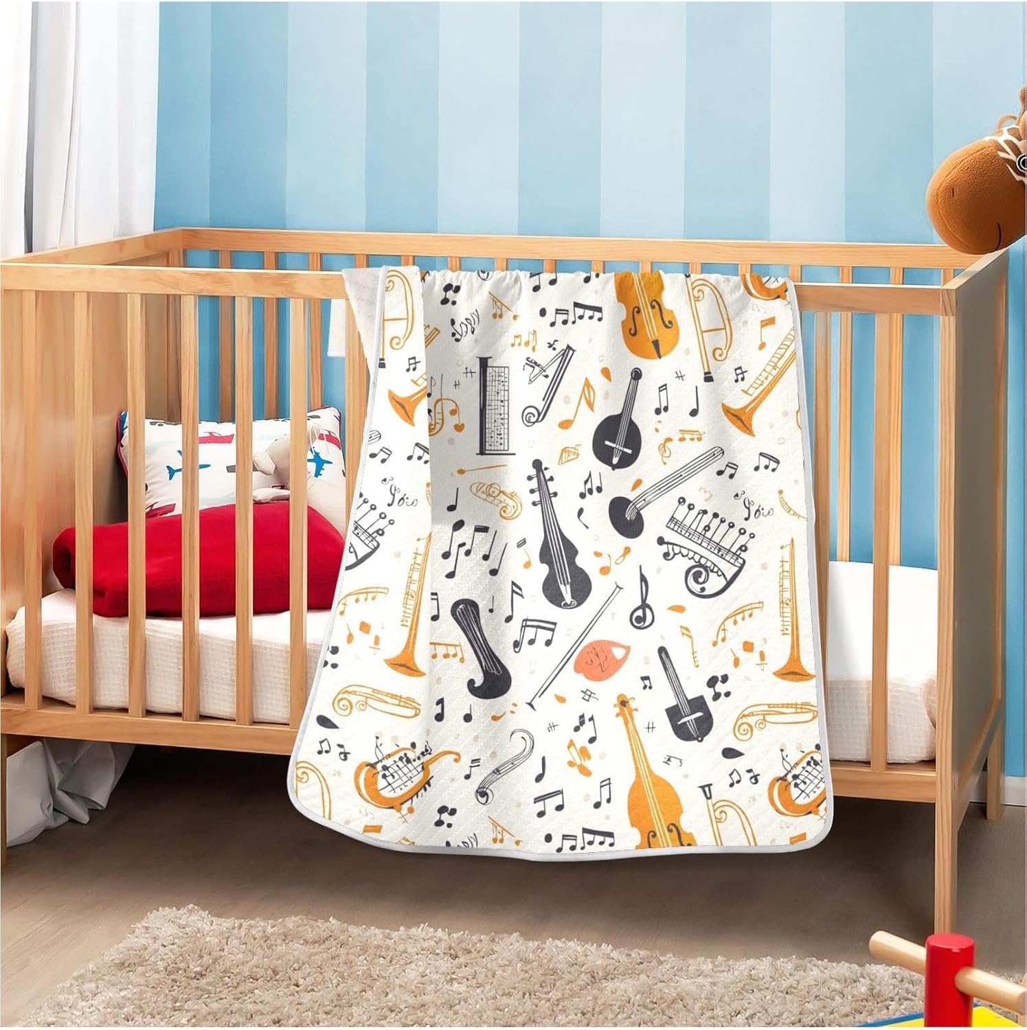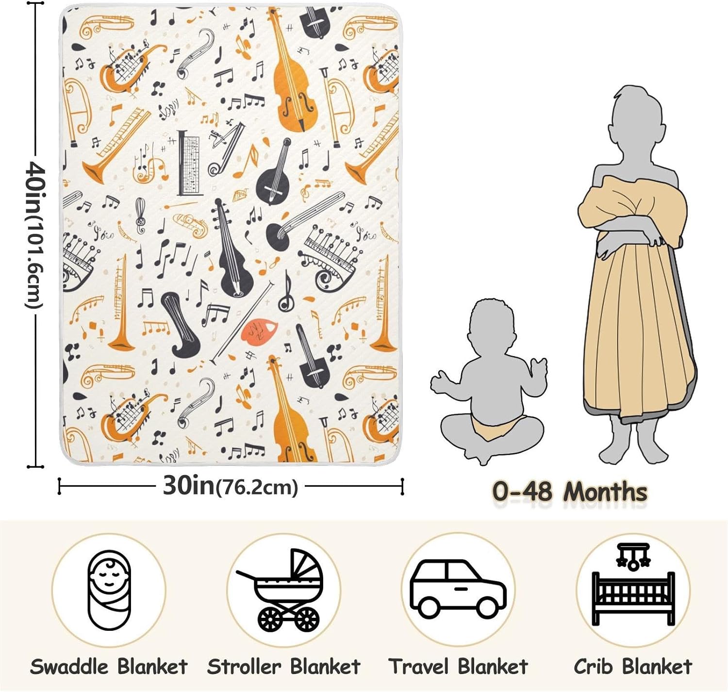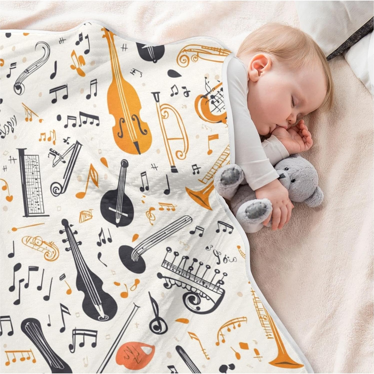 ZZKKO Musical Notes Instrument Baby Blankets for Boys Girls Toddler Swaddle Blankets for Kids Crib Stroller, Receiving Cotton Baby Blanket 30×40 inch